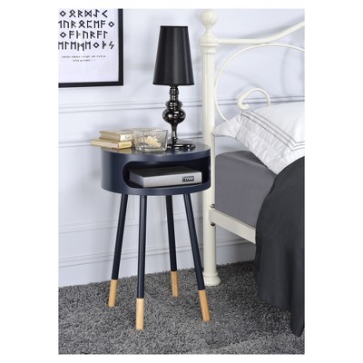 3.4 out of 5 stars with 11 ratings. Bring streamlined style to your bed's side with this nightstand. Round gold metal accent table (16.5 in. Its round base is echoed in a glowing ring shade with an acrylic diffuser that ensures soft illumination over a side table or nightstand. Round black finish metal end table with haze finish wood top (12 in.